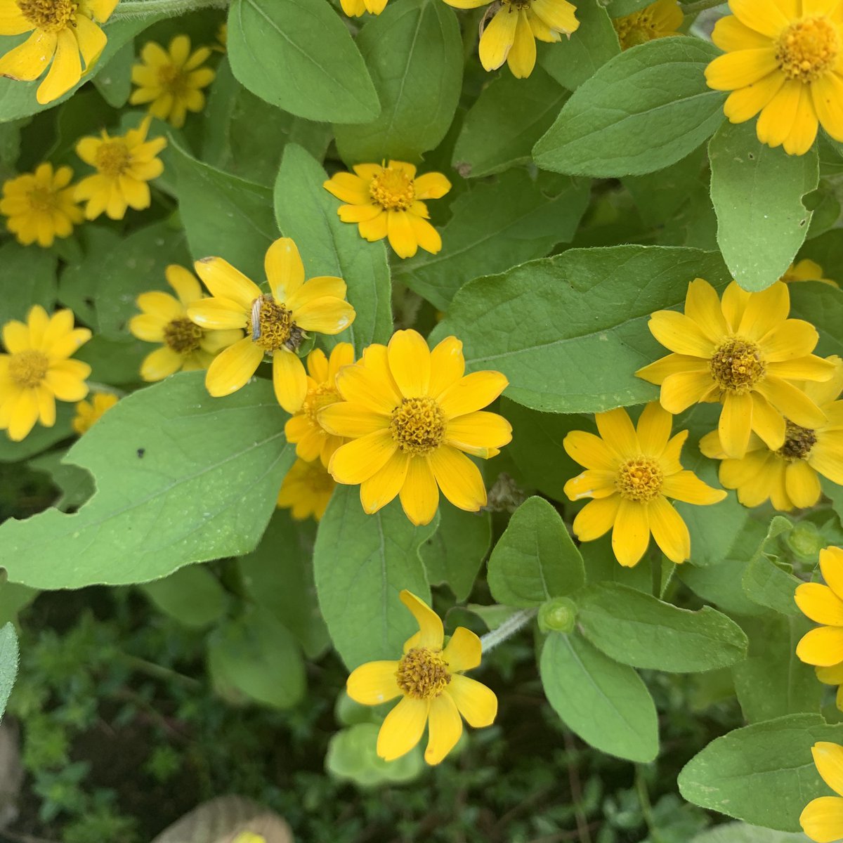 一般名:メランポディウム(Melampodium)、学名:Melampodium divaricatum、又名:メランポジューム、生活型:一年草、株高:~40 cm、葉序:対生、花序:頂生、花径:3 cm、花色:黄色、開花期:4~11月、用途:鉢植え、グランドカバー、寄せ植え、花壇。だから「メランポジューム」をおすすめしています☆ 花径は約2cm。 植え替えていただくとすぐに一面まっ黄に見えるほど可愛い花で覆われます。 また、この花は、かっちりした草姿で育てやすいこと😁📸メランポジュームの花になります。黄色の花が暑い夏の盛りも休む事なく次々に小花を咲かせます。何輪も咲かせます。 * * 💛メランポジュームの花言葉🎵/元気、小さな親切、あなたは可愛いです。 * * 😁お早うございます。